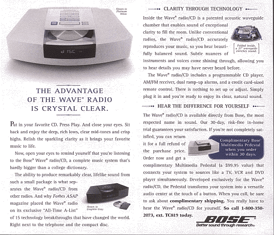 Looking around you find your usual ad slip which is ok with me although I'm not going to be getting a Wave Radio.