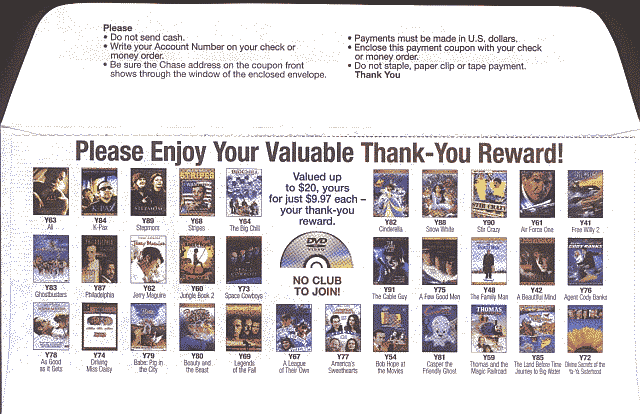 Rip off that "Reward" and note that there is another ad for dvd movies and you can't remove this one. You need to mail it with the ad. Never know if the postal employees want a deal on dvd movies.