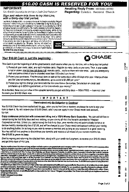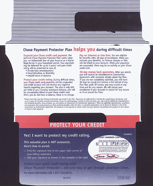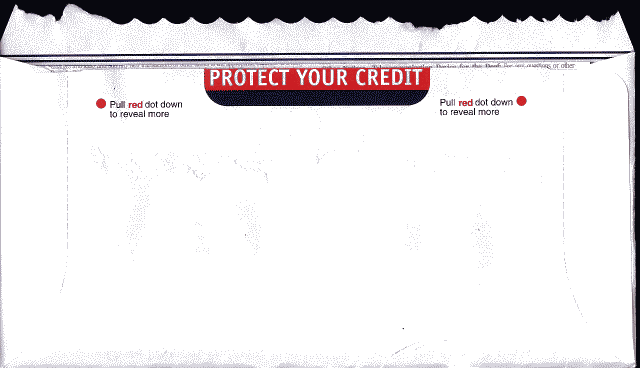 Protect Your Credit, pull red dot down to reveal more. The envelope with your statement is an ad in of itself! Now you see why they put that easy open tab, so you don't rip their ads up.