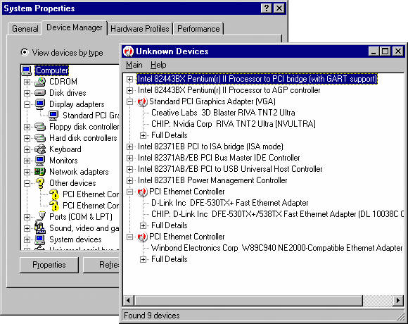 New! You can get a beta version of the next Unknown Devices with Windows Vista support. I will be posting new beta versions as features are added but please give it a shot and let me know if you have any issues at catfish@halfdone.com. The beta version works with Win95, 98, 98se, 2000, XP, 2003 and Vista.